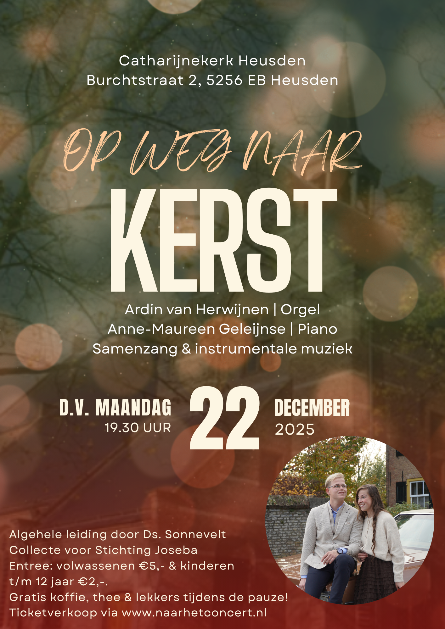 Van harte welkom op ons concert! Deze avond biedt een afwisselend programma van samenzang en instrumentale muziek. We zingen samen psalmen onder begeleiding van Ardin van Herwijnen op het orgel en Anne-Maureen Geleijnse op de piano. Daarnaast kunt u genieten van enkele instrumentale stukken zonder samenzang.